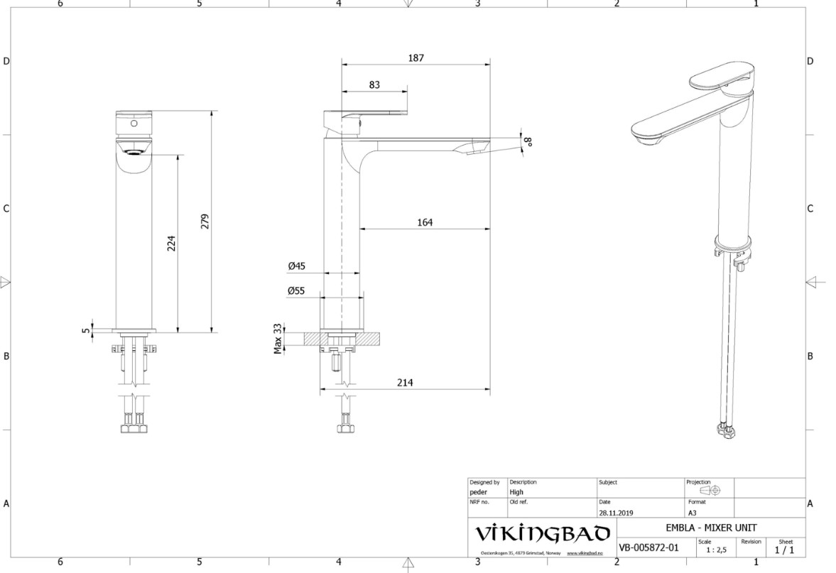 Et rett, stilrent og lekkert servantbatteri i høy modell. Dette servantbatteriet er i en høy modell og passer utmerket til bolleservanter og lignende. Ønsker du et moderne, men tidløst, servantbatteri er dette et godt valg for deg.